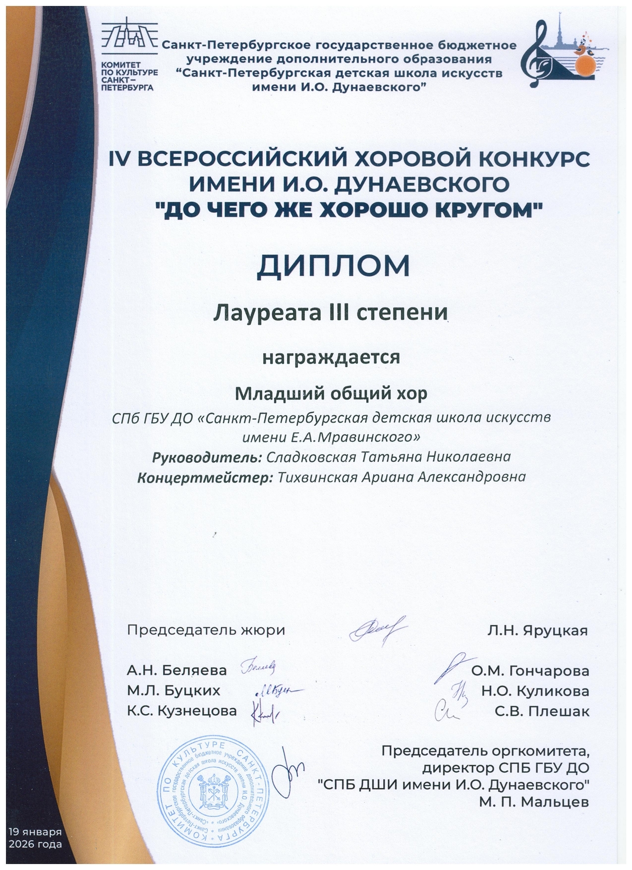 Также хор был отмечен СПЕЦИАЛЬНЫМ ДИПЛОМОМ