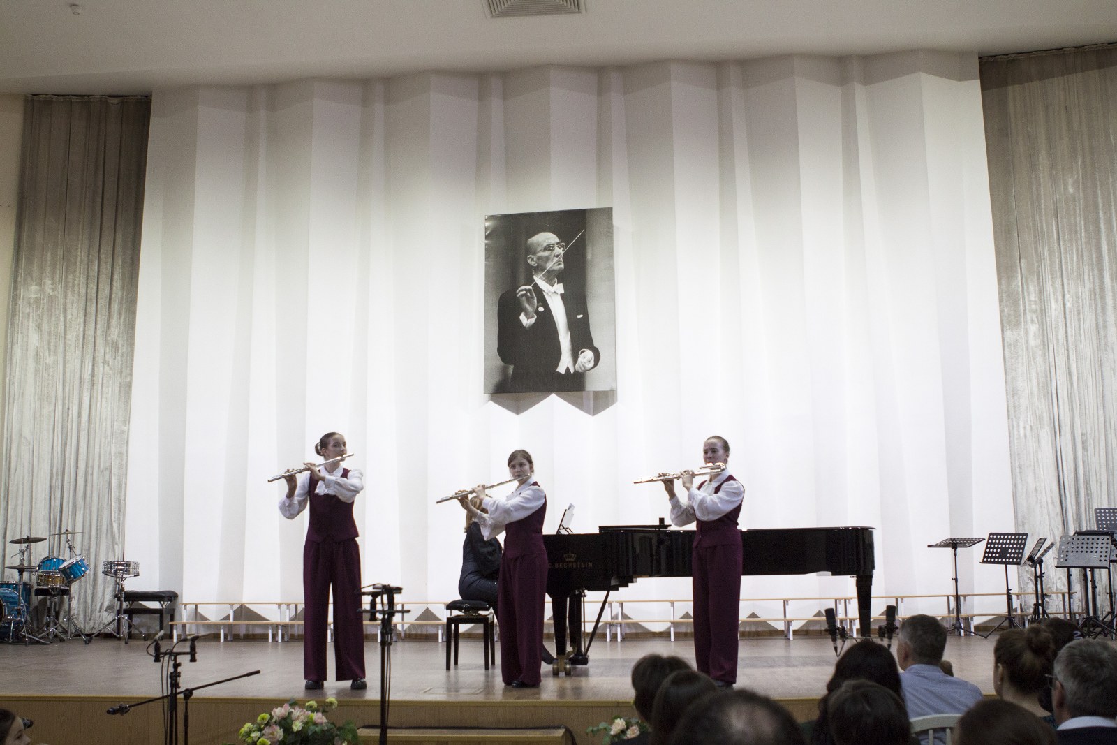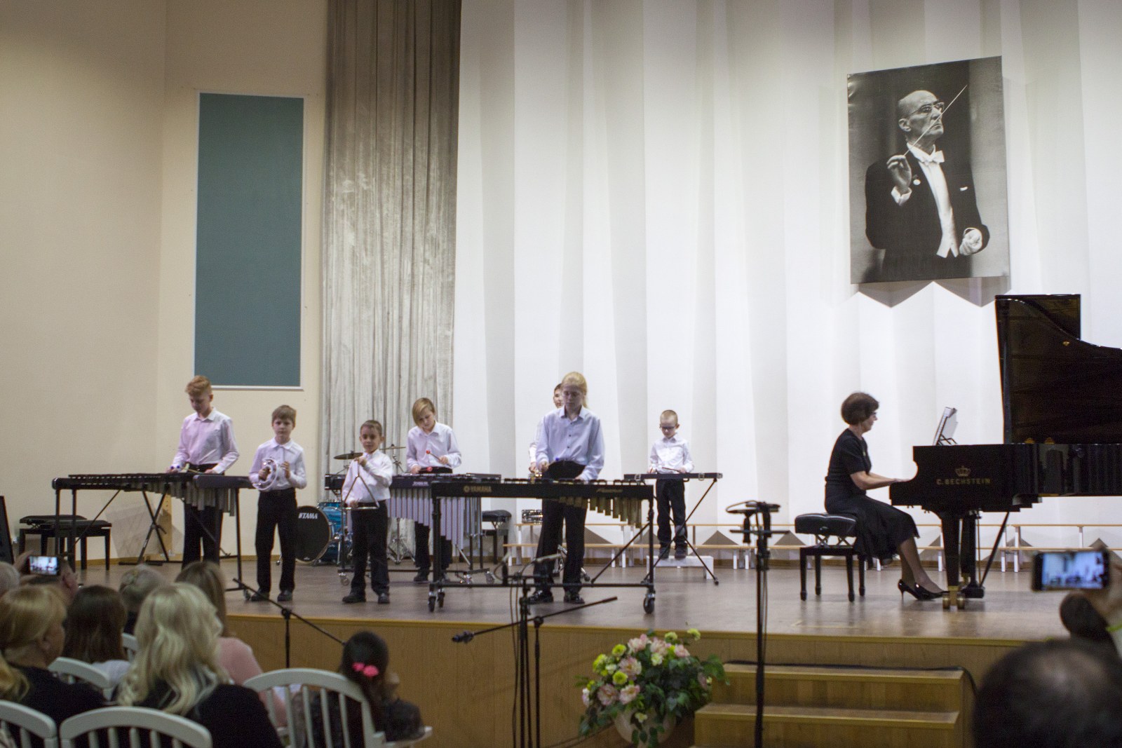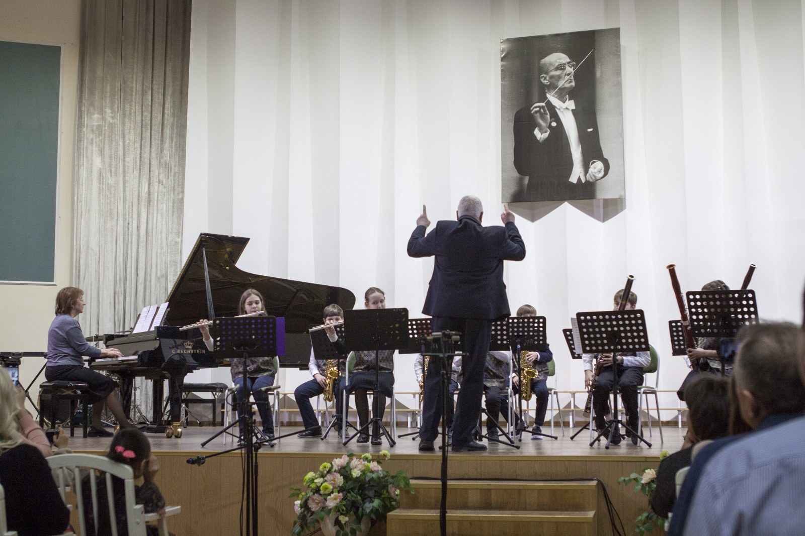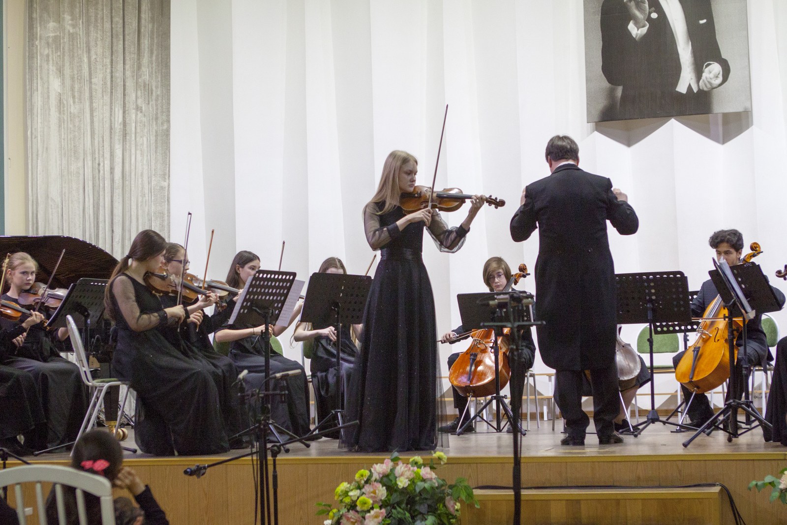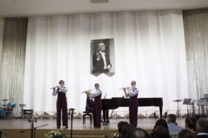 Яркие краски в палитру концерта добавил дуэт Таисии Михайловой (флейта) и Эвы Хахва (фортепиано) преподавателей Некипеловой И.В. и Магдальчук С.И., ансамбль флейт «ТанЛиВер» (преп. Болтовская А.В., конц. Солодихина И.А.) и вокальный ансамбль (Арина Калашникова, Елизавета Кайнова, Полина Епимахова, Виталина Арифулина, Карина Ульянова, Адель Болдоржиева) преподавателя ЗА РФ Борисевич Е.С., концертмейстер Нурмедова И.Е.. Нельзя не отметить и яркое выступление Марии Визенберг (скрипка, преподаватель Кочиева М.В.), которая исполнила первую и вторую части Концерта А. Вивальди «Зима» в сопровождении струнного оркестра.