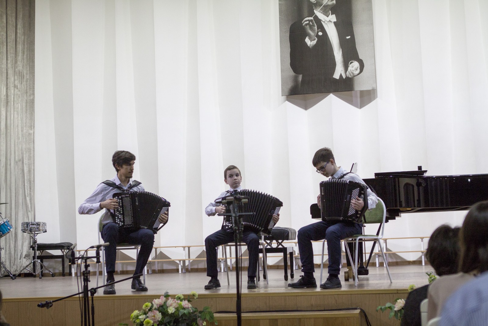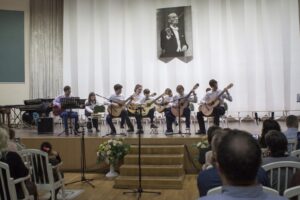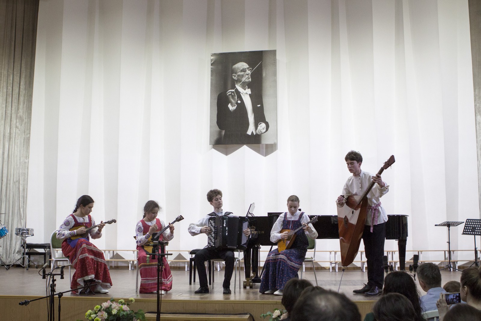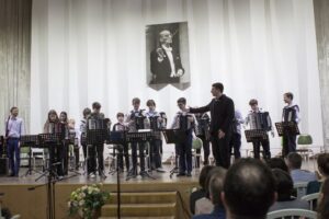 Уже много лет на народном отделе школы проводится конкурс ансамблей «Вместе веселее». Обладатели Гран-При этого конкурса – Ансамбль русских народных инструментов в составе: Ева Казиева (балалайка), Мария Казиева (домра), Андрей Михеев (баян), Екатерина Мегвинова (балалайка), Иван Тузов (балалайка-контрабас) преподавателей Козловской К.А. и Коляденко О.А. и трио баянистов (Андрей Конторов, Филипп Беломытцев, Адршин А.Р.) – также приняли участие в концерте, покорив слушателей своими вдохновенными выступлениями! Особый восторг у публики вызвало и зажигательное выступление Ансамбля ударных инструментов (рук. Сомов А.Л.).