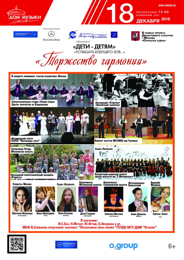 По приглашению Международного Благотворительного фонда Владимира Спивакова  18 декабря  2016 года струнный оркестр  школы под руководством А.В. Мазницина   выступил в Камерном зале Московского международного дома музыки. Концерт под названием «Торжество гармонии» собрал участников из разных уголков России.