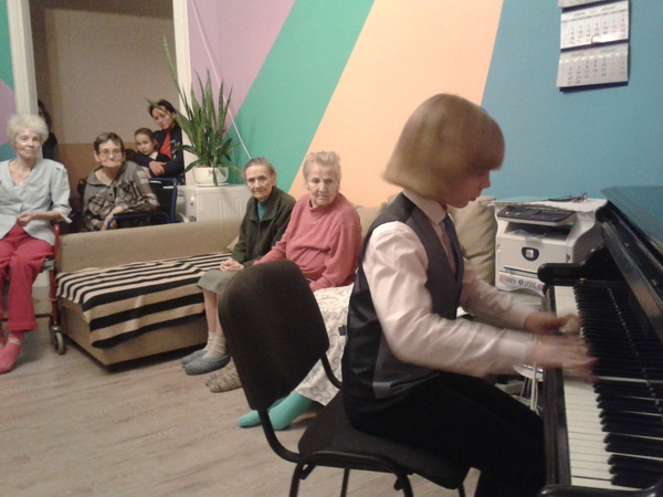 26 и 27 января 2017 года состоялись концерты в пансионах для пожилых людей и лиц с ограниченными возможностями «Русь» и «Как дома». Преподаватели фортепианного отдела Соколова Т.П., Воробьева А.М., Шарова Е.Ю., Прояева О.К., Фомина В.А., Никонова Н.Ф. со своими учениками подготовили для пожилых одиноких людей и инвалидов настоящий музыкальный праздник. Звучали популярные, любимые мелодии — «Полонез» Огинского, «К Элизе» Бетховена, музыка современных композиторов. Каждое выступление юных артистов вызывало живой отклик, слова искренней благодарности у слушателей.