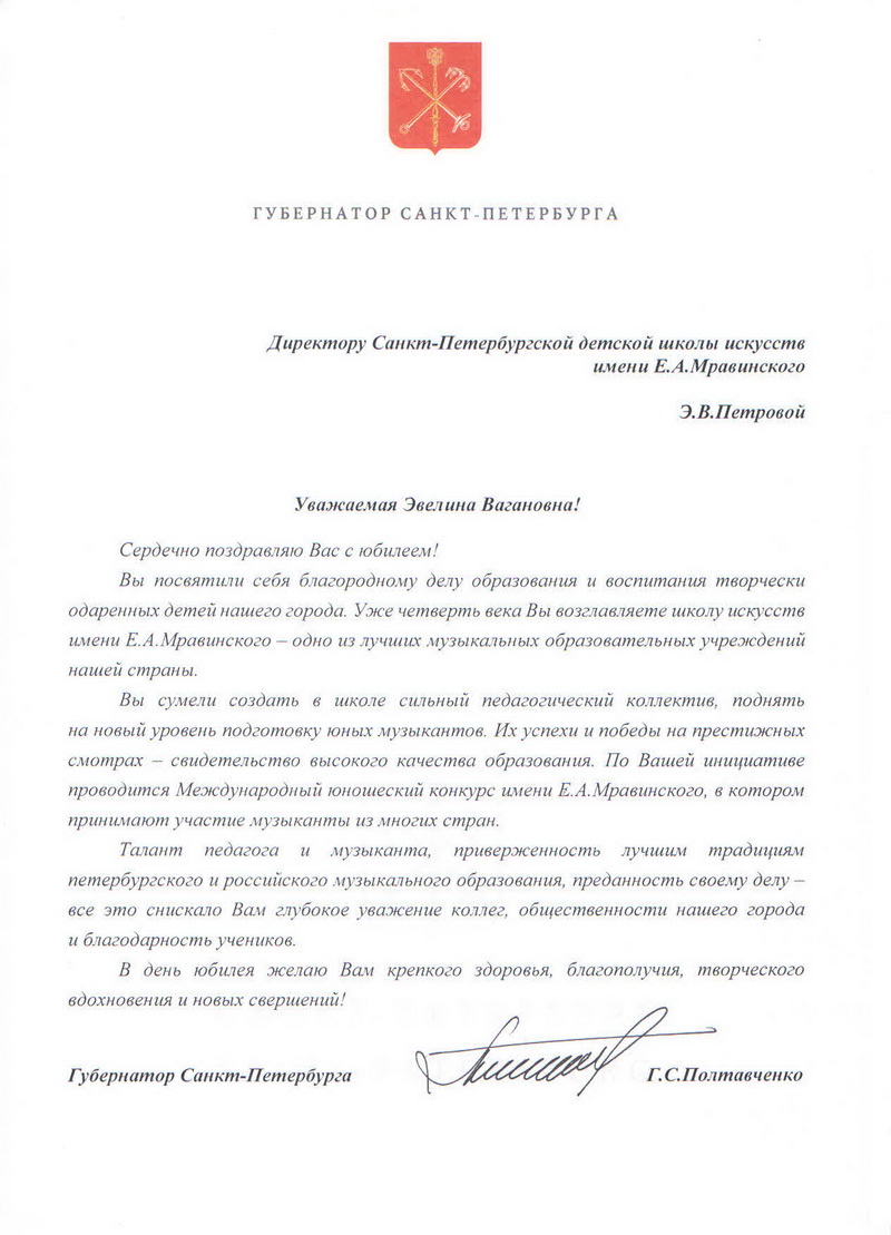 Поздравление Губернатора Санкт-Петербурга Г.С.Полтавченко