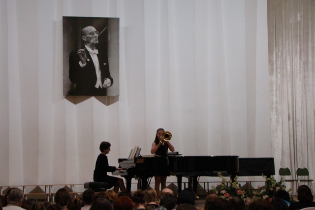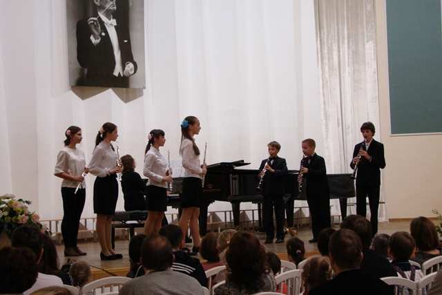 Сначала гостям школы был предложен концерт — «Знакомство с музыкальными инструментами». Опыт вступительных экзаменов показывает, что многие широко распространенные в музыкальной практике инструменты неизвестны ни родителям, ни детям. В ходе концерта слушатели увидели и услышали почти все инструменты, на которых ведется обучение в школе и получили о них краткие комментарии. Также гости узнали, что помимо игры на инструменте соло, дети участвуют в одном из 3-х школьных оркестров (струнном, духовом или народных инструментов), выступают в ансамблях разного состава. Концерт вызвал живую реакцию у слушателей. Выступления всех юных музыкантов были встречены публикой очень тепло. Особый успех выпал на долю Арины Павловой (домра), Андрея Краснова (балалайка), Матвея Громова (баян), Златы Тонких (тромбон), Ашировой Насти и Казаковой Сони (скрипичный дуэт). Очень понравилось детской аудитории «Попурри на темы песен из мультфильмов», которое исполнил струнный оркестр младших классов. Выступление ансамбля флейтистов и кларнетистов (Локшина Саша, Нечаева Настя, Маркова Маша, Сидоренко Маша, Колесников Алеша, Назаров Женя, Лебедев Саша), завершившего концерт полькой «Дедушка», стало его яркой кульминацией и было одобрено слушателями криками «браво» и бурными аплодисментами.